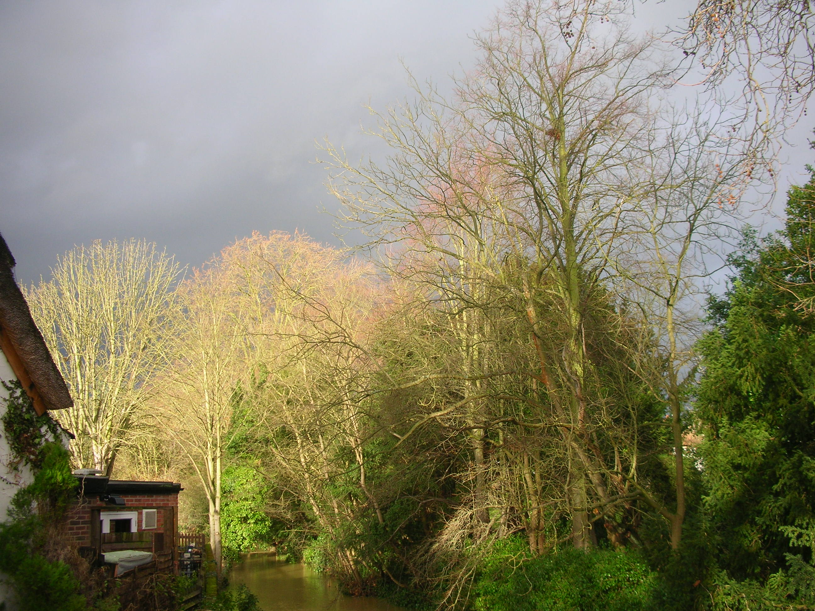 Here in the East of England we have only had the tail end of the freakish high winds, tides and rain that have battered the West coasts of Britain and Ireland. This is one of the storms about to roll over us. The little river in our village is pretty full.