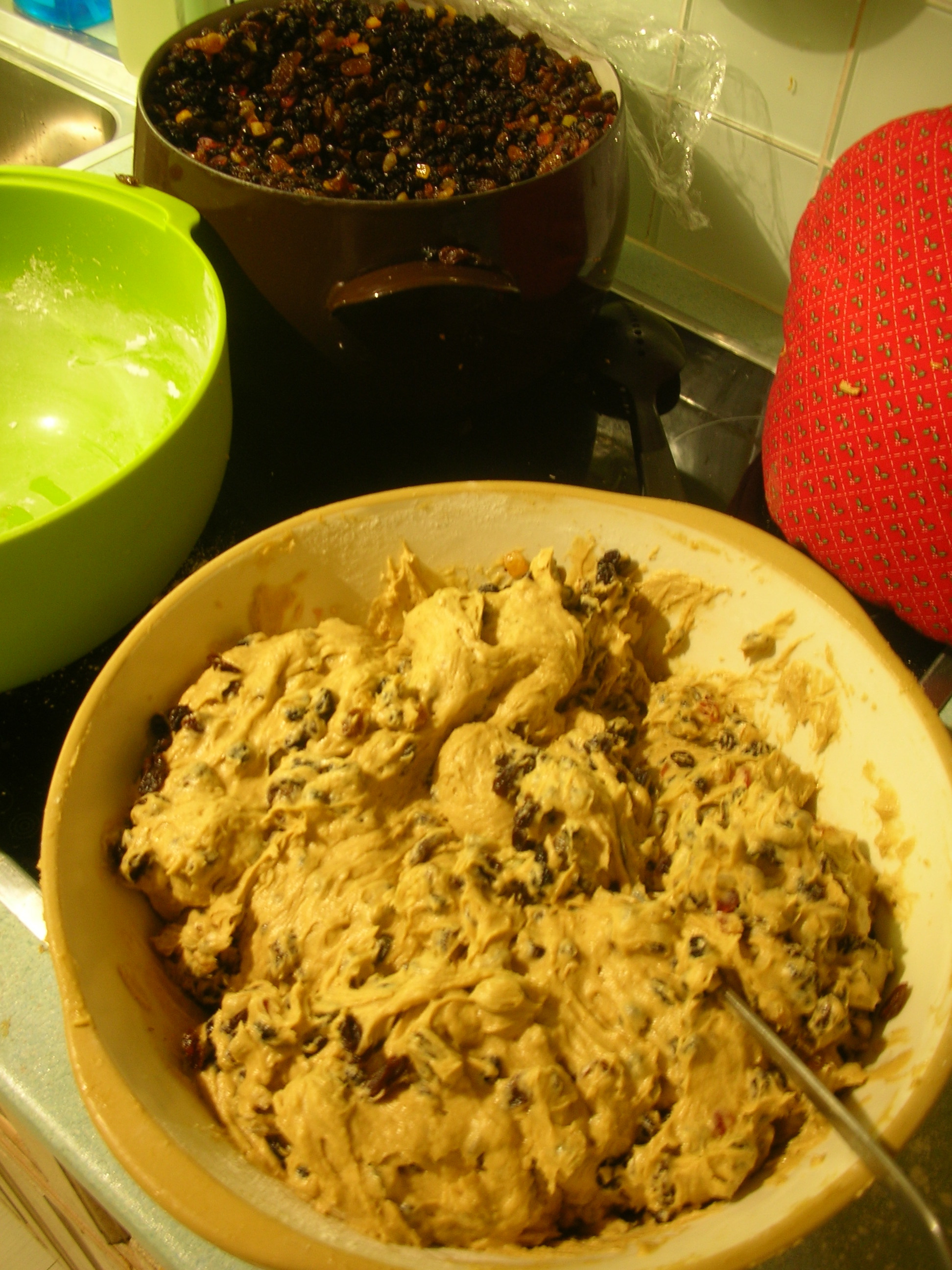 Although I enjoyed the mud-pie side of hand mixing the dried fruit, I think, on the whole, I’d better stick to writing.