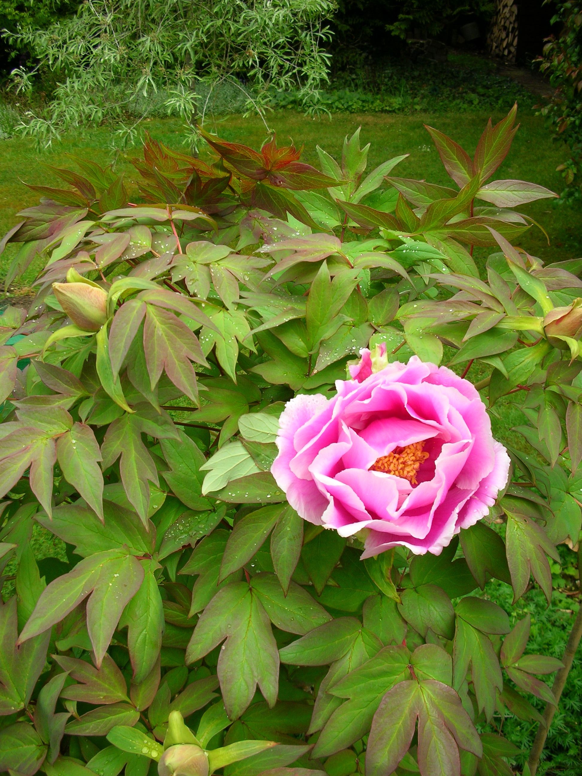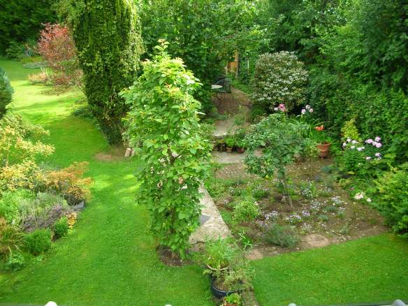 I wanted to put up a last post about my Big Garden Works (originally planned for last December), but the builders have not yet finished their part. This is what the garden outside the back door looked like (taken from a window) last August.
