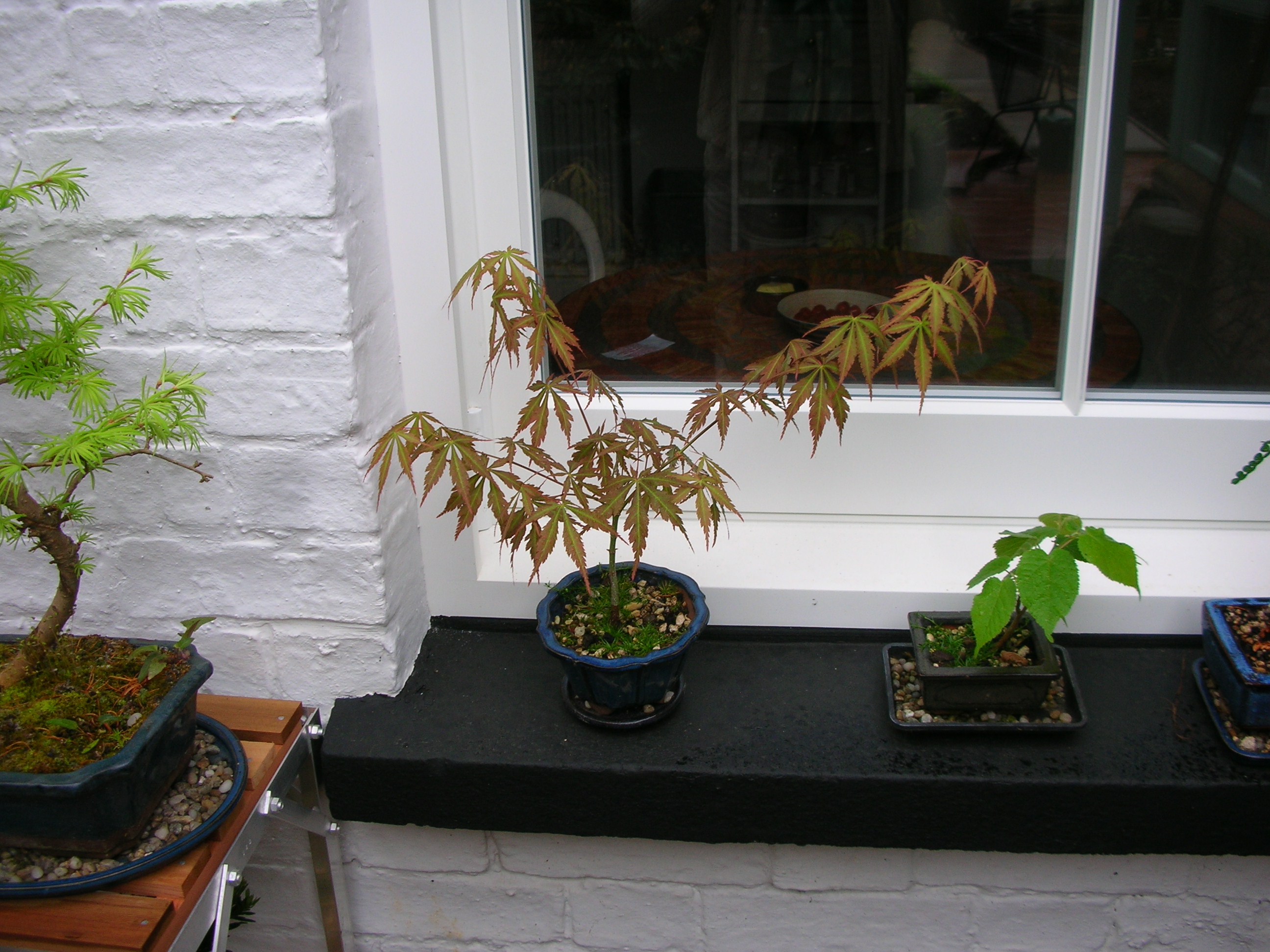 Some of my beloved maples to finish. A three year old seedling that my husband is bonsai-ing.