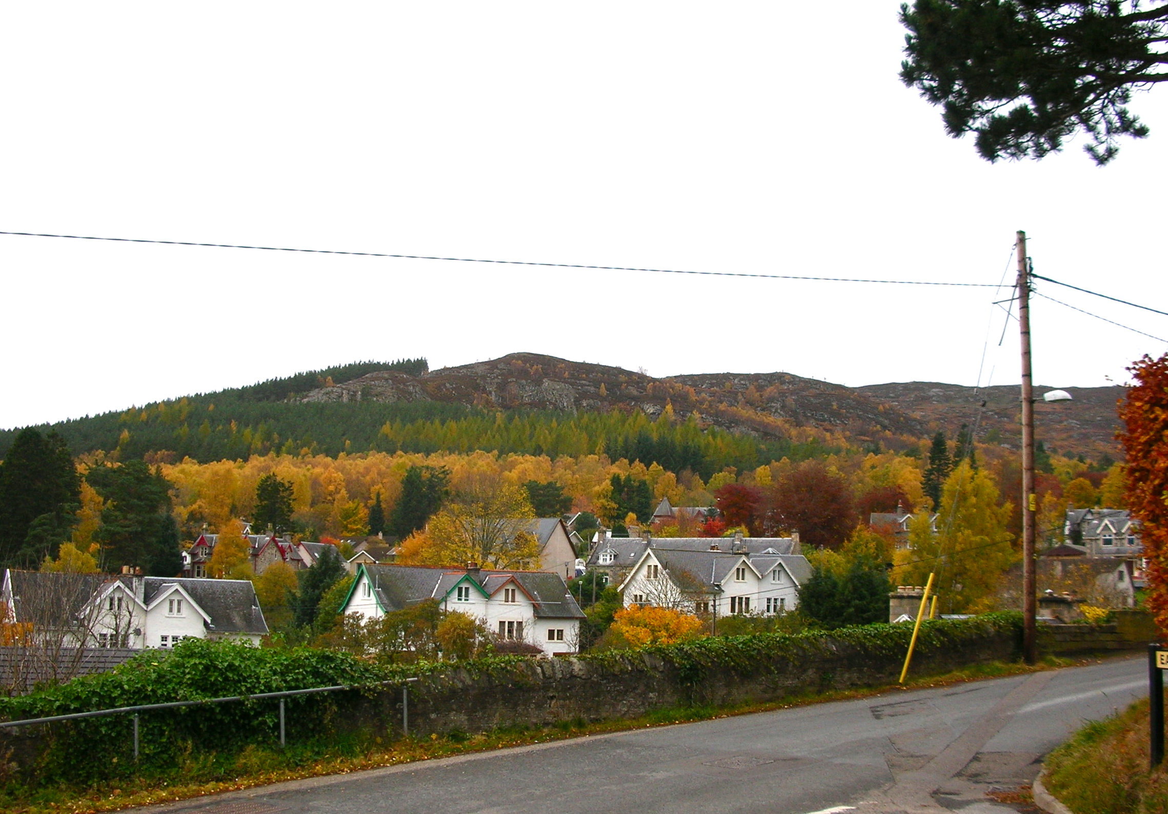 We travelled up to the Highlands of Scotland, through a beautiful autumnal England and said goodbye in brilliant sunshine. I meant to take photos, but was too involved talking to the family. As we left yesterday it rained and I took one photo. This road leads up a steep hill to the house that he and my aunt built in the 1970s, and where we spent many happy holidays walking in the Cairngorms.