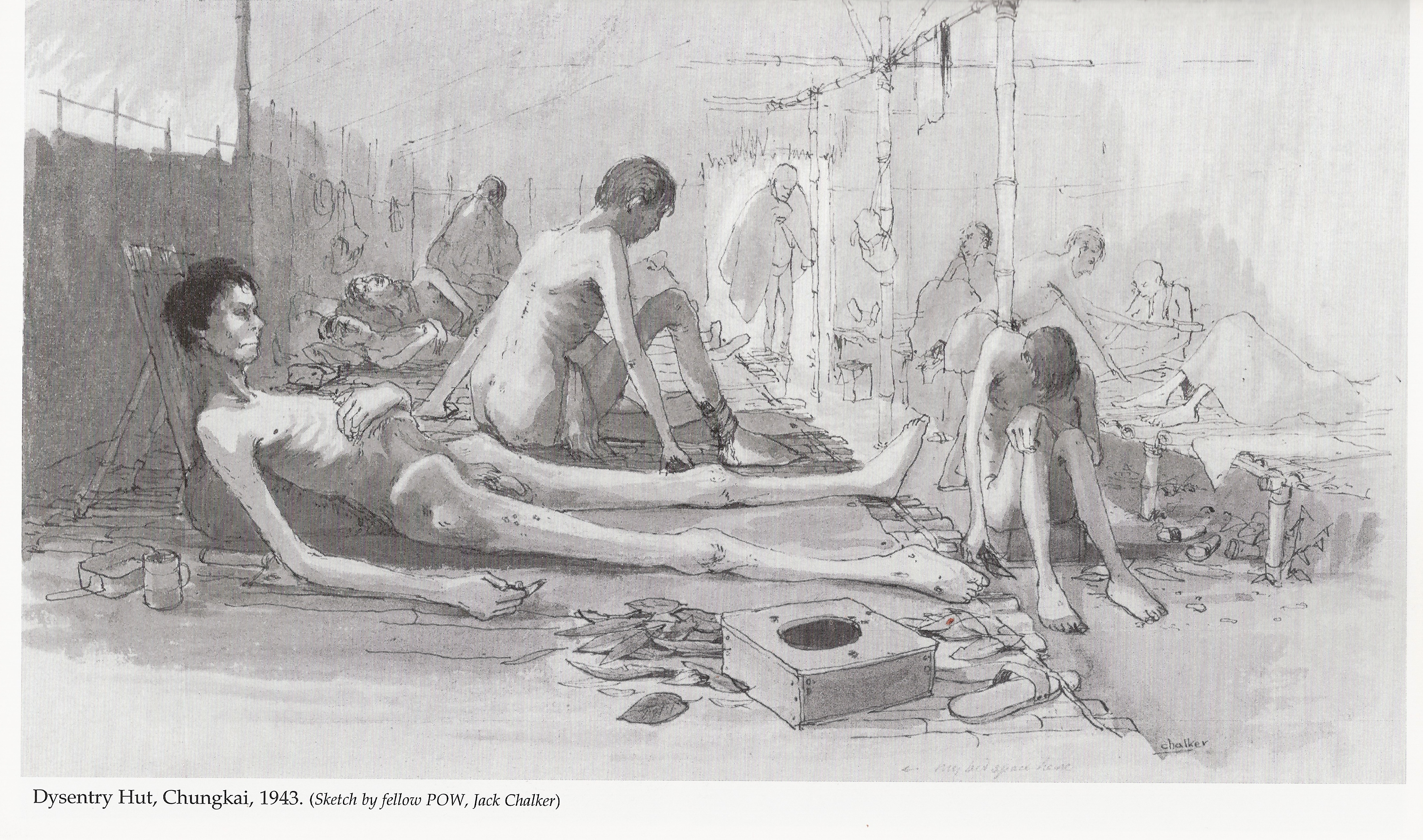 There were no painkillers and the next few days must have been agonising after the anaesthetic had worn off. These patients, referred to as the “Amputs”, lived all together in a separate hut and no doubt comforted one another. By the end of the War most of the survivors were getting about on some sort of bamboo prosthesis.